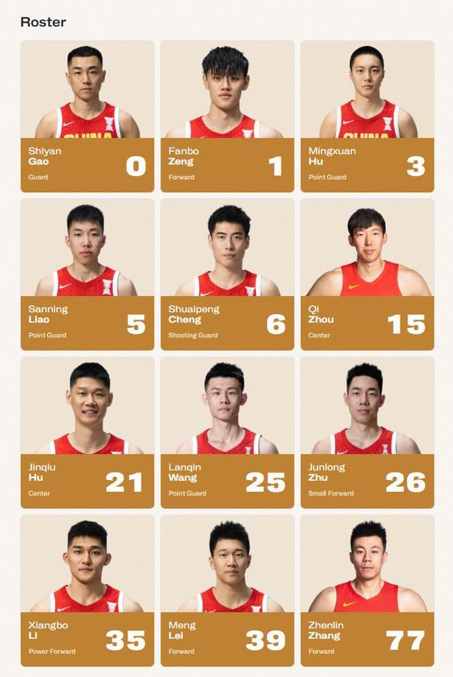 FIBA官方更新世预赛比赛名单:中国男篮无变化,赵睿缺席中韩次战